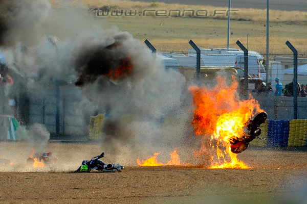 C’est l’abandon. Après un check-up à l’Hôpital du Mans, une fracture non déplacée du poignet a été détectée. Nous lui souhaitons un prompt rétablissement avec une pensée pour ses proches. La 36e édition des 24H du Mans et ses préliminaires furent très contrastés avec 2 chutes et 2 pilotes blessés. Mais le Team MetisS a su s’adapter en accord et le travail de tous en intégrant 2 nouveaux pilotes qui ont apprécié et pris plaisir à piloter le prototype MetisS leur offrant un nouvel horizon sur le développement d’une moto et la possibilité de repousser plus loin leurs limites de pilotage. Le Team MetisS rate une occasion de faire une belle performance, au vu des essais encourageants, lorsque l’on revoit le déroulement de l’épreuve avec un nombre impressionnant d’abandon (21 sur 56 qualifiers) ou de problèmes mécaniques chez les TOP Team. Grosse pensée à Vincent Houssin qui avait pris toute la mesure du prototype MetisS et su apporter à l’équipe toute sa compétence en analyse et développement avec Camille Hedelin. La MetisS et son train avant JBB (T.S.S.) reste toujours aux yeux des pilotes une machine grisante sur laquelle on prend plaisir à rouler et découvrir de nouvelles possibilités de se dépasser. Rendez-vous est donné à tous en 2014 pour la prochaine course du Bol d’Or sur le circuit de Magny-cours.